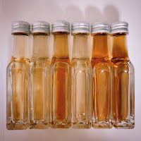 Danach rief uns Scott noch einmal in Erinnerung, dass bis in die 60er Jahre alle Highland Malts gepeated waren und sogar Kleidung oftmals im Torfrauch getrocknet wurde. Später hat man zunächst Gas und Öl als Wärmequelle für die Trocknung benutzt, heute ist die Torfnutzung in den Highlands ja eher ungewöhnlich. Der Torf für die Trocknung der Gerste bei Cu Bocan stammt aus Aberdeenshire, die aber nur für ca. zwei Wochen pro Jahr zum Einsatz kommt und zu einem Outturn von nur 15.000 Litern pro Winter führt. Dabei sind alle Produktionsschritte kürzer gehalten als beim klassischen Tomatin, was zu einer ungewöhnlichen Süße führt. Gleichzeitig stehen bei Cu Bocan dann aber eher die ungewöhnlichen Fassreifungen im Fokus. Der ppm-Wert variiert immer zwischen 15 und 40, weil immer auch mit ungetorftem Malz gemischt wird. Egal ob getorft oder ungetorft - das Malz stammt bei Tomatin von Simpsons, wo ein Batch immer mit 100 bis 150 ppm produziert wird, danach aber je nach Wunsch der abnehmenden Destillerie heruntergetorft wird, indem man ungetorftes Malz zumischt.